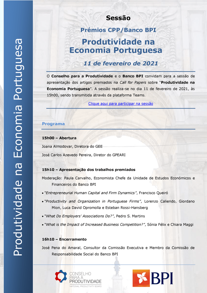PRODUCTIVITY IN THE PORTUGUESE ECONOMY – CPP/BPI AWARDS